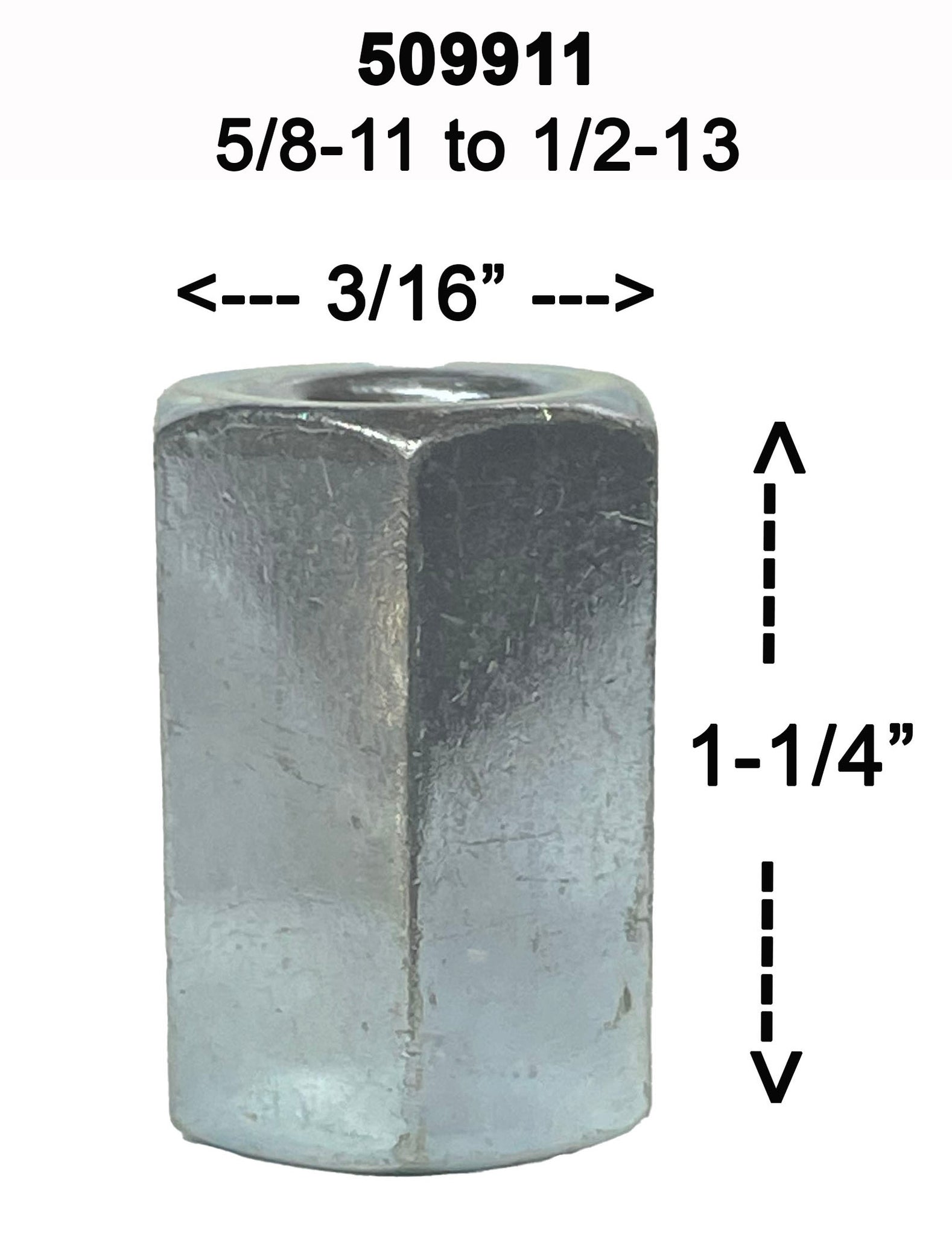 8 Pack 5/8-11 to 1/2-13 x 1 1/4" Long Reducer Coupling Nut - Zinc Plate 509911
